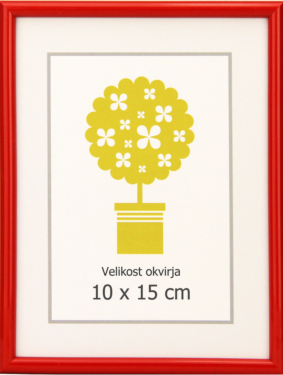 Foto okvir 10×15 cm, plastika, namizni, stenski, 95 rdeč