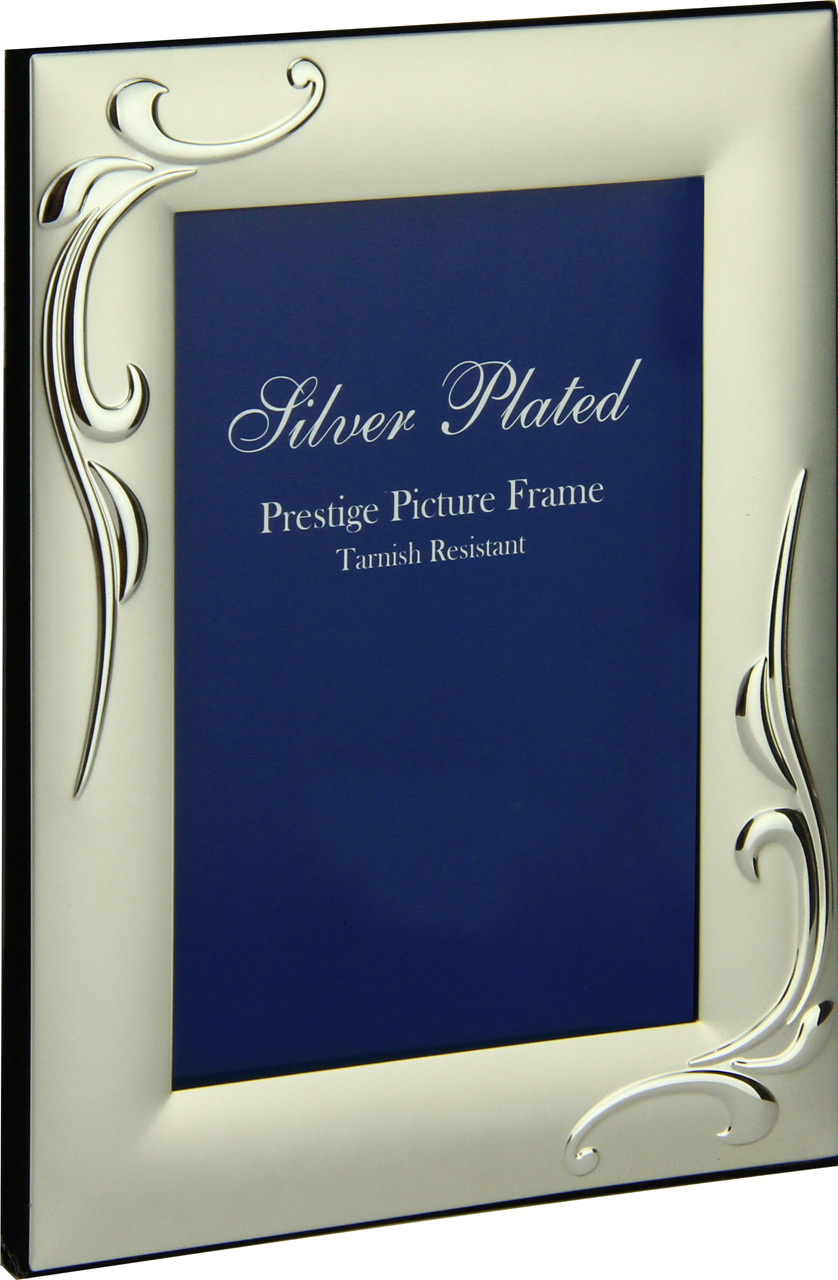 Kovinski okvir za slike – fotografije vašemu spominu doda posebno vrednost. Na žametni hrbtni steni je stojalo oz. nogica, da lahko okvir postavite na mizo. Posrebren. Za svečane priložnosti.