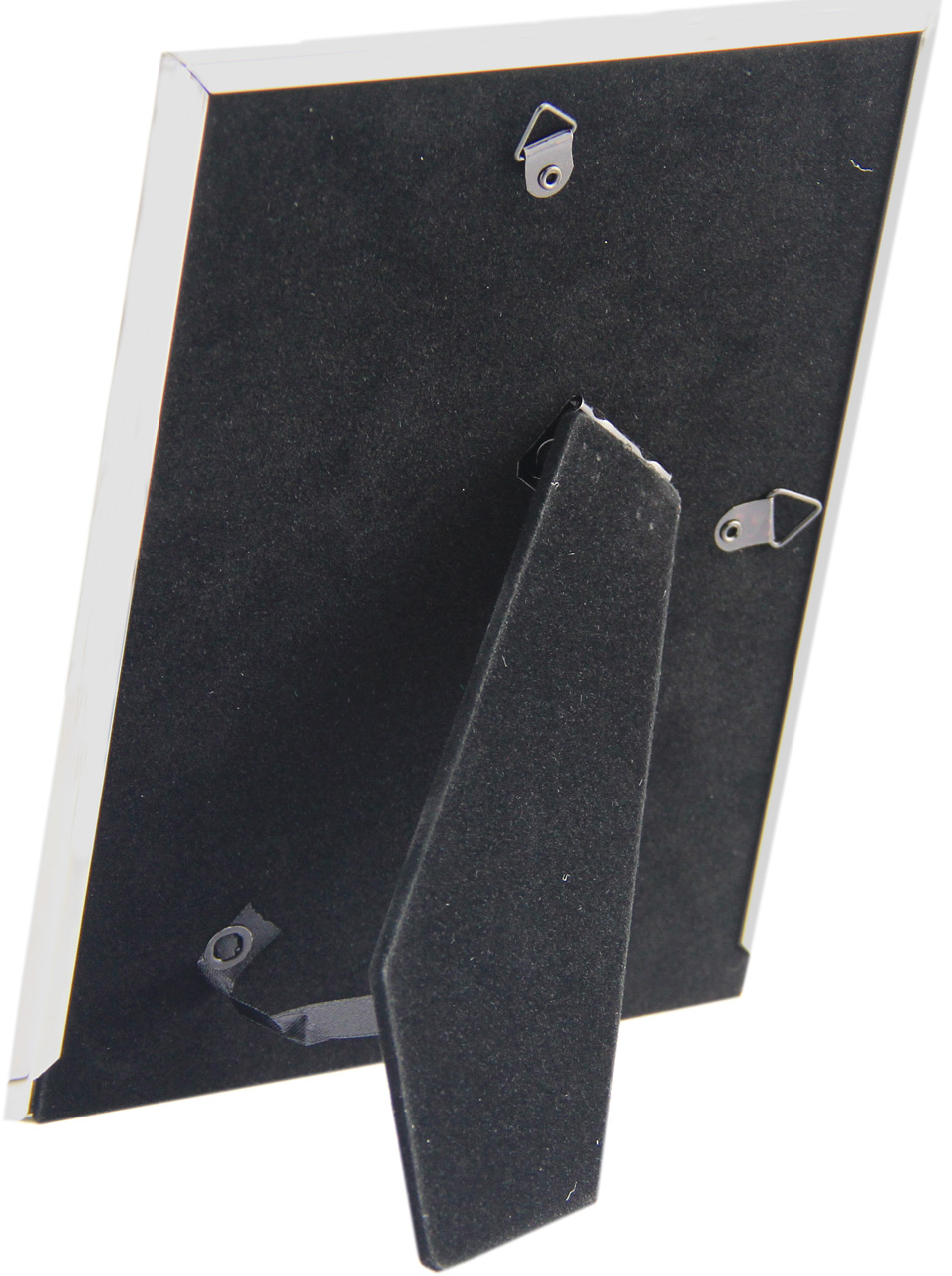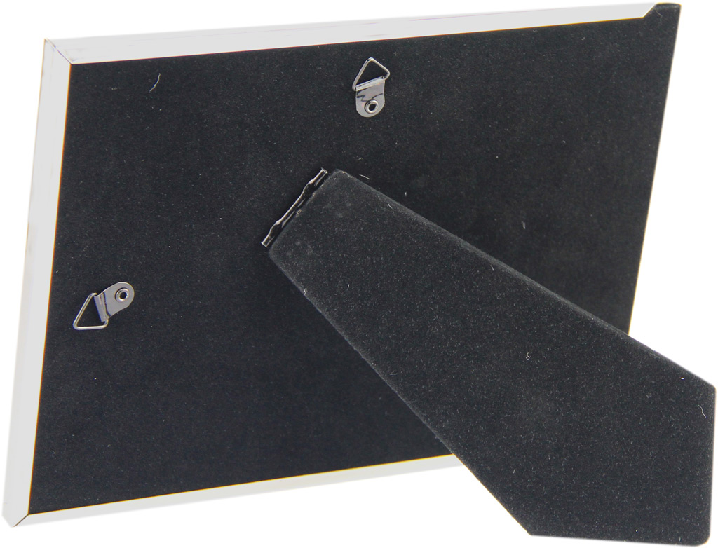 Kovinski okvir za slike – fotografije vašemu spominu doda posebno vrednost. Na žametni hrbtni steni je pritrjeno stojalo oziroma nogica, da lahko okvir postavite na mizo. Tudi za svečane priložnosti.