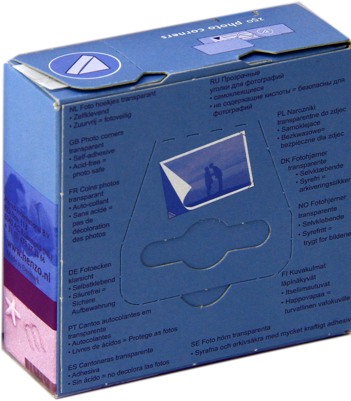S foto vogalčki slike enostavno pritrdite v foto album za lepljenje fotografij. Vogalčki so transparenti in brezkislinski, zato slik ne bodo poškodovali.