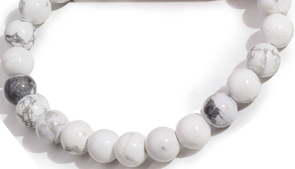 Zapestnica iz naravnega kamna je za vse, ki se radi povežejo z naravo. Beli hovlit povezujejo z inspiracijo, intuicijo in ustvarjalnostjo. Zapestnica je iz kroglic premera 8 mm. Za vsakogar.