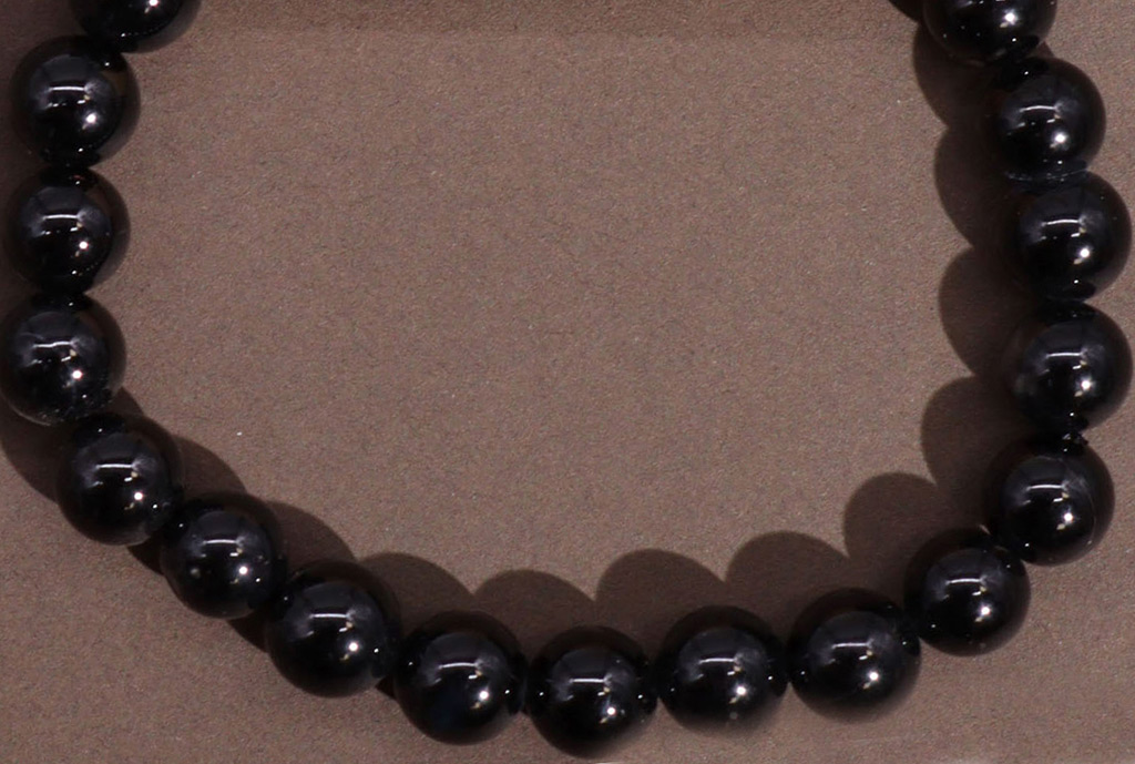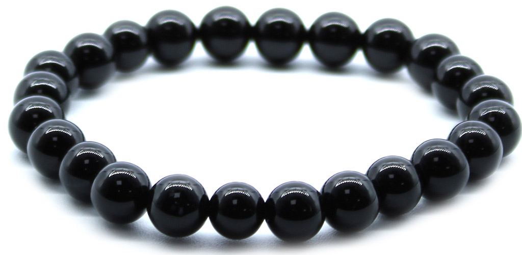 Karako zapestnica iz kamna – črni ahat – moč, zaščita – krog. 8 mm