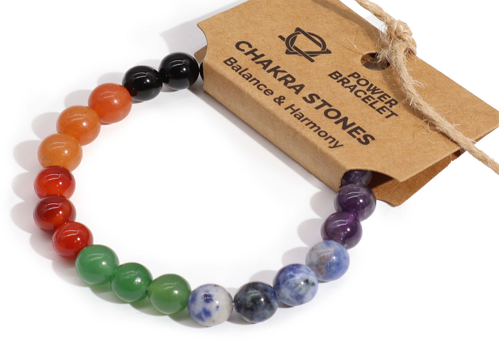 Zapestnica iz 7 različnih vrst kamnov naj bi ugodno vplivala na vse čakre v telesu. Zapestnica je sestavljena iz kroglic premera 8 mm. To je popolno darilo za vsako priložnost.