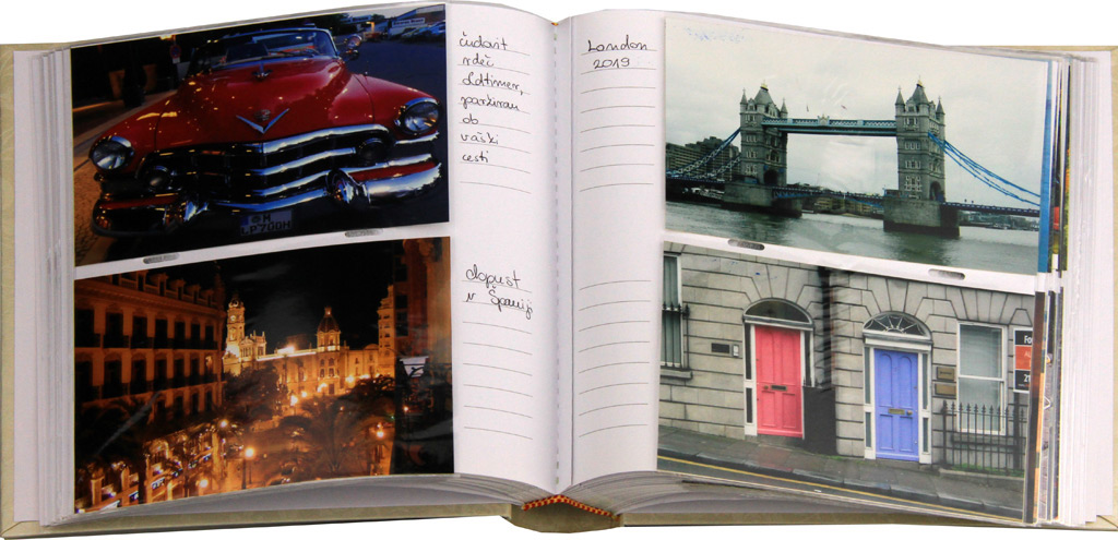 V vložni album shranite 200 fotografij dimenzije 10×15. Slike vložite v žepke v fotoalbum, ki je knjigoveško vezan. Vsaka stran ima memo prostor kamor vpišete spomine.