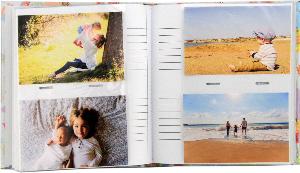 V otroški vložni album shranite 200 fotografij dimenzije 10×15. Slike vložite v žepke v fotoalbum, ki je knjigoveško vezan. Vsaka stran ima memo prostor, kamor vpišete spomine.