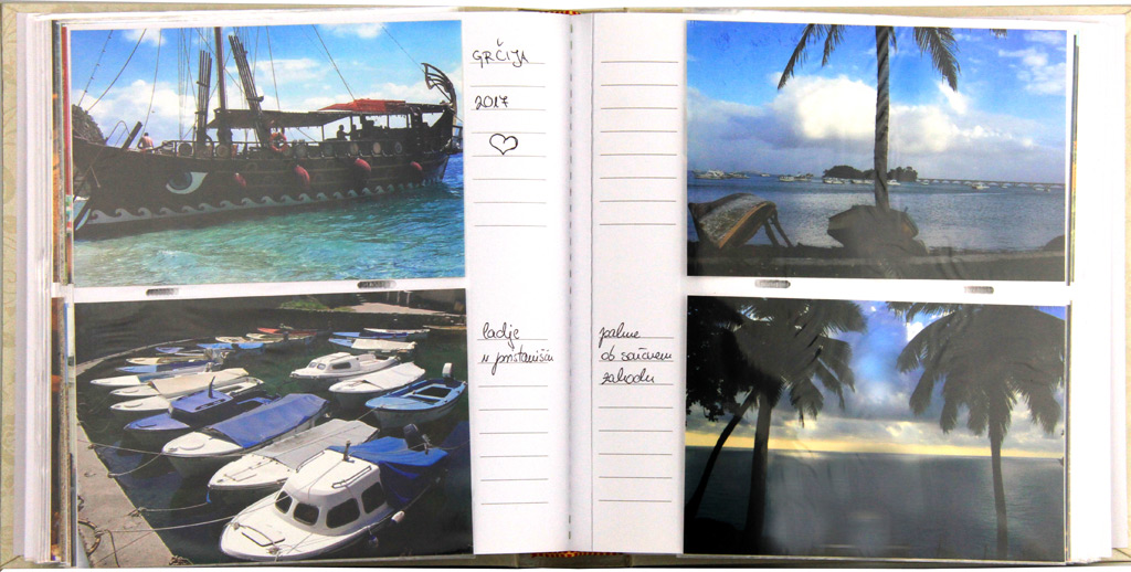 V vložni album shranite 200 fotografij dimenzije 10×15. Slike vložite v žepke v fotoalbum, ki je knjigoveško vezan. Vsaka stran ima memo prostor, kamor vpišete spomine.