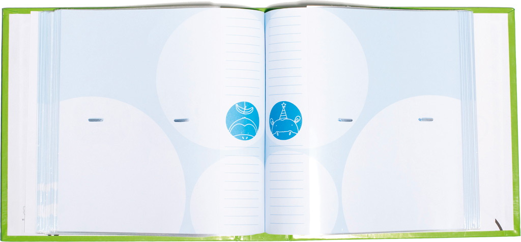 V otroški vložni otroški album z memo prostorom lahko shranite 200 fotografij dimenzije 10×15. Slike vložite y plastične žepke v fotoalbum.Vsaka stran ima memo prostor kamor vpišete spomine.