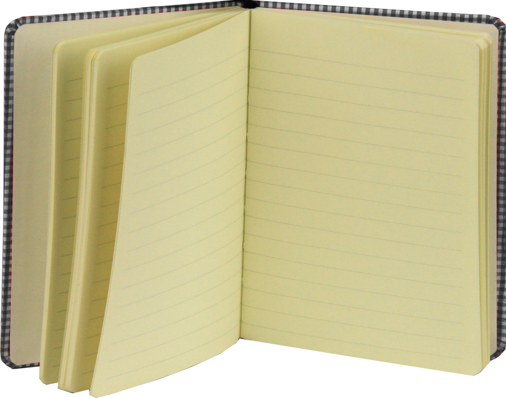 Notes – beležka s trdimi platnicami in elastiko za zapiranje ima 100 črtastih listov krem barve. Velikost zvezka je 11×15,5 cm, gramatura papirja je 80 gsm. Vsebuje tudi tekstilno kazalo.
