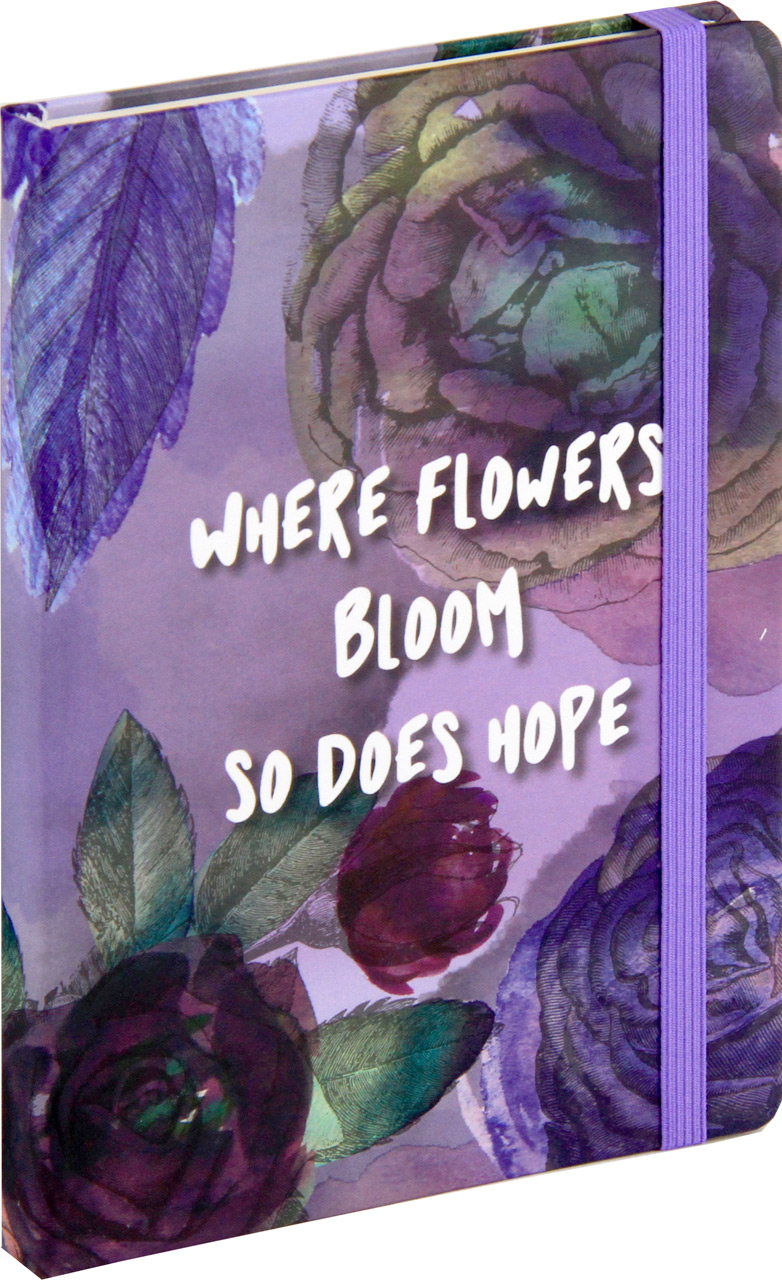 Notes A6 črte trde platnice, 96 listov, z elastiko, 0617.14, New Floral viola