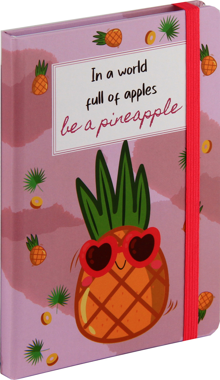 Notes A6 črte trde platnice, 96 listov, z elastiko, 0641.14, Sadje ananas