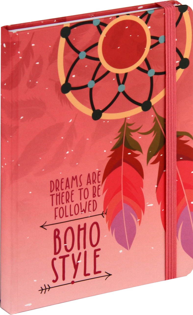 Notes A6 črte trde platnice, 96 listov, z elastiko, 0692.12, Boho Style roza