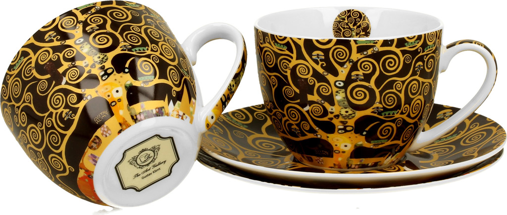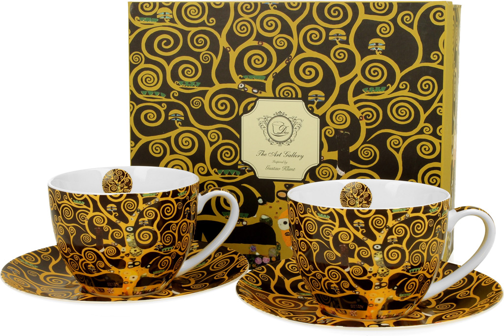 Set 2 skodelic + krožnika Klimt Drevo, 250 ml porcelan, darilna embalaža, 3564
