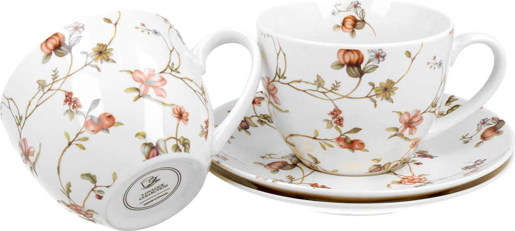 Eleganten set 2 skodelic in krožničkov za kavo ali čaj. Prikupni cvetni motiv Safa. Porcelan, 250 ml. Lična embalaža, nadvse primerna za darilo.
