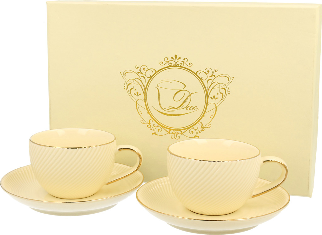 Set 2 skodelic + krožnika Smetana, 100 ml, porcelan, darilna embalaža, 2704