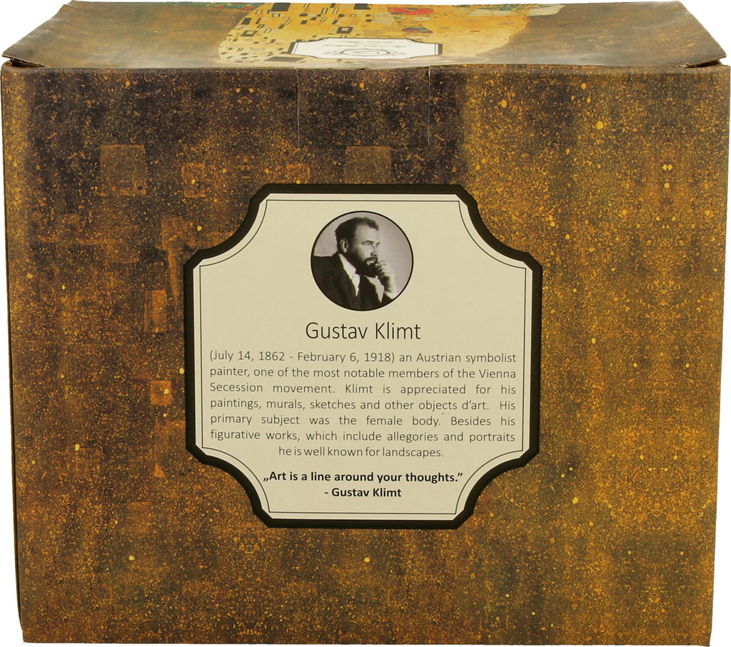 Elegantna skodelica iz porcelana za čaj, vodo, sok ali juho. Priljubljen Klimtov motiv Poljub. Porcelan, 1000 ml. Lična embalaža, nadvse primerna za darilo