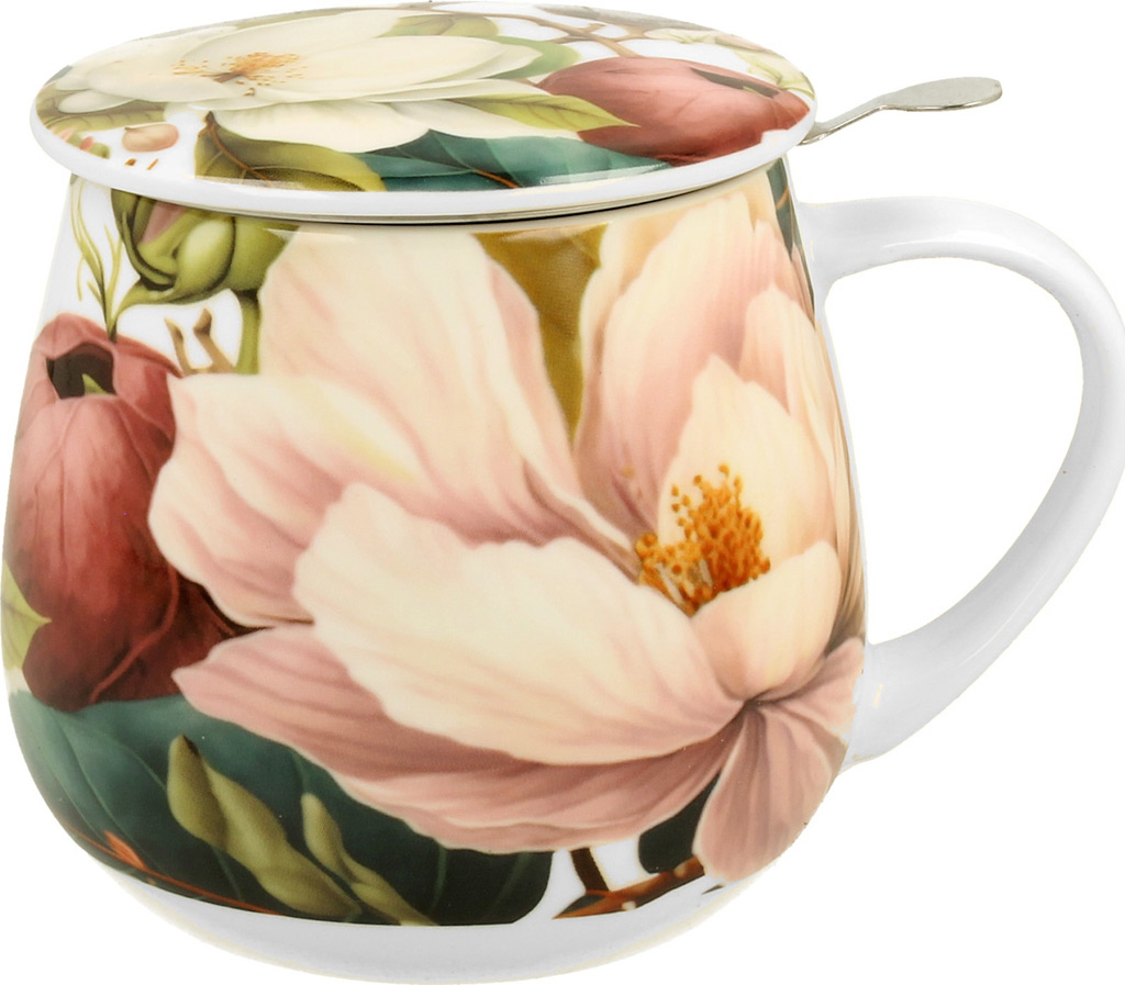 Skodelica+pokrov+cedilo Magnolija, 430 ml porcelan, darilna embalaža, 4378