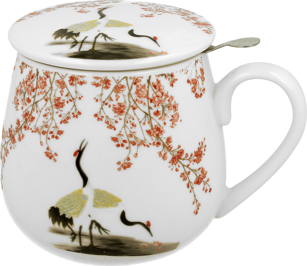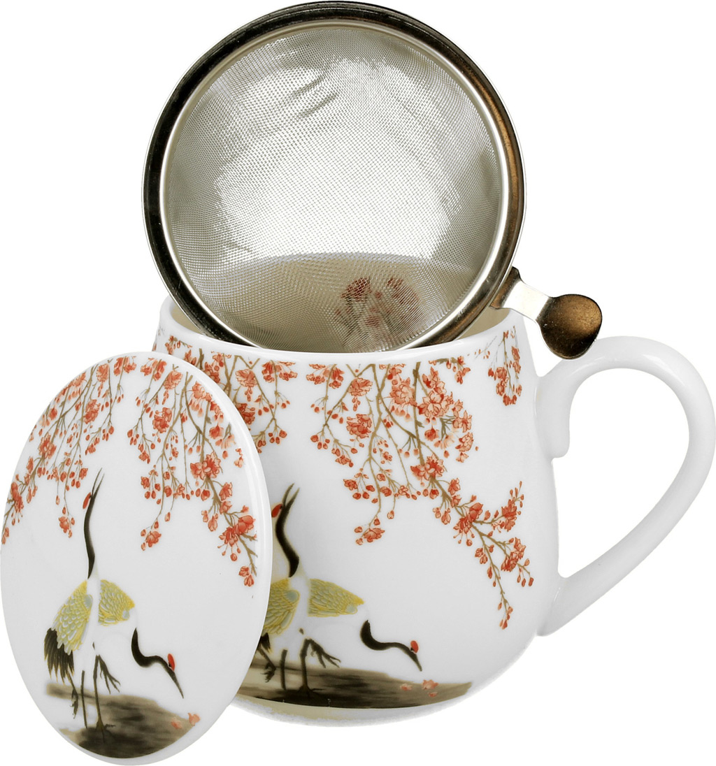 Skodelica+pokrov+cedilo Žerjav, 430 ml, porcelan, darilna embalaža, 2383