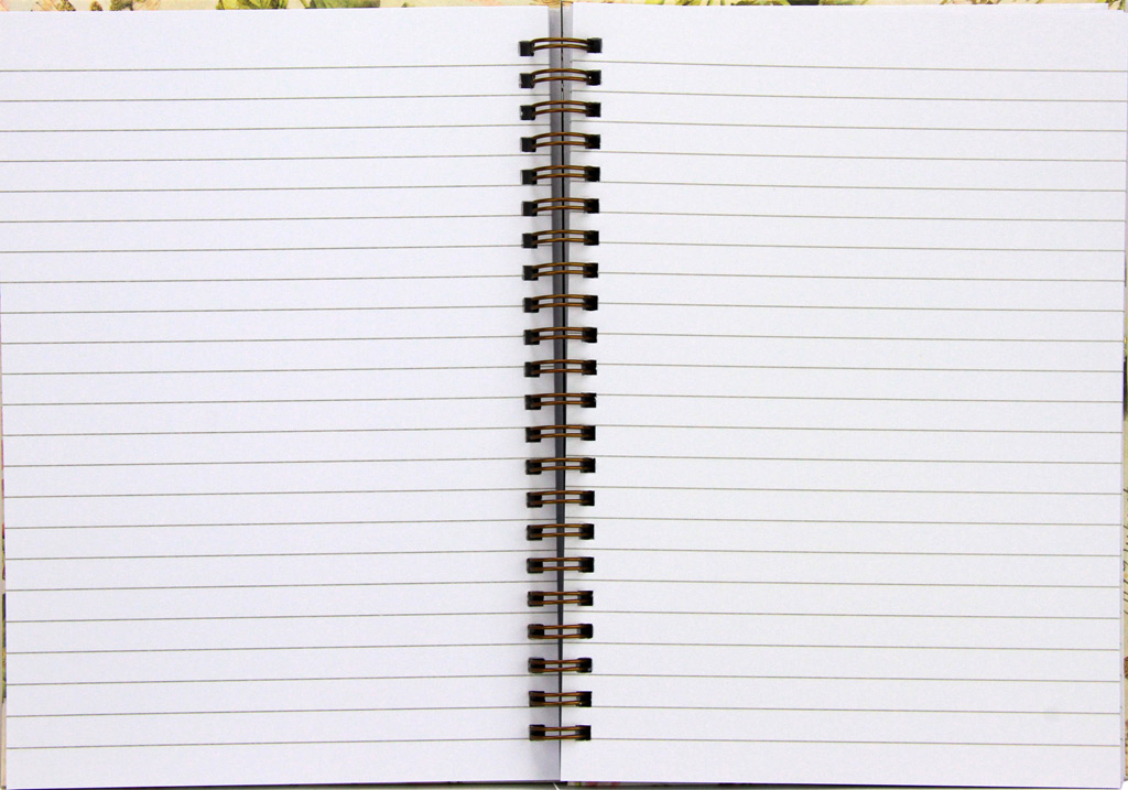 Spiralni zvezek s trdimi platnicami ima 100 črtastih listov – 200 strani. Velikost zvezka je 14,5×20,5 cm, gramatura papirja je 70 g/m2. Nežni zlatotisk na platnicah.