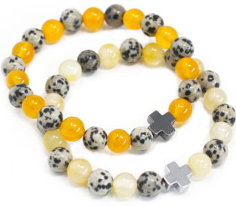 Komplet 2 zapestnic – dalmatinski jaspis, rumeni ahat – kroglice 8 mm