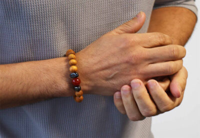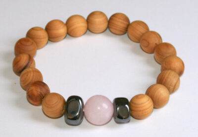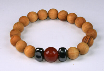 Lesena zapestnica – cedra in kamena strela – kroglice 10 in 12 mm