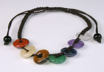 Zapestnica iz brušenih kamenih obeskov – za čakre – več vrst kristalov