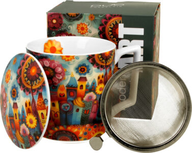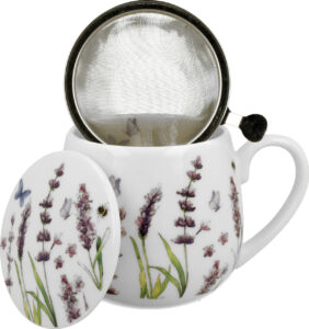 Skodelica+pokrov+cedilo Cvetje, 430 ml porcelan, darilna embalaža, 6580