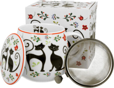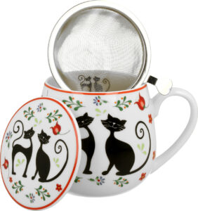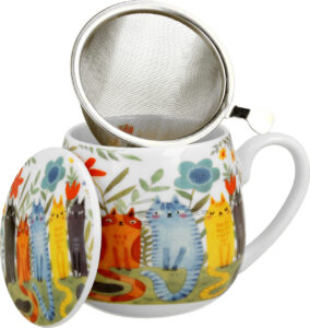 Skodelica+pokrov+cedilo Mucki na čaju, 430 ml porcelan, darilna embalaža, 4034