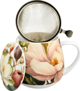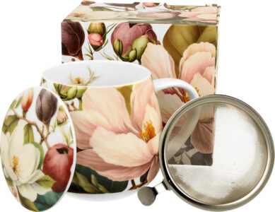 Skodelica+pokrov+cedilo Magnolija, 430 ml porcelan, darilna embalaža, 4378