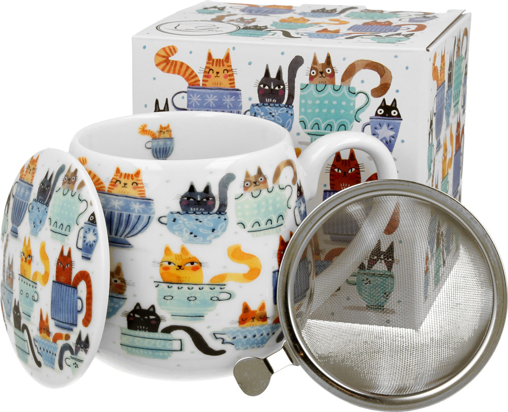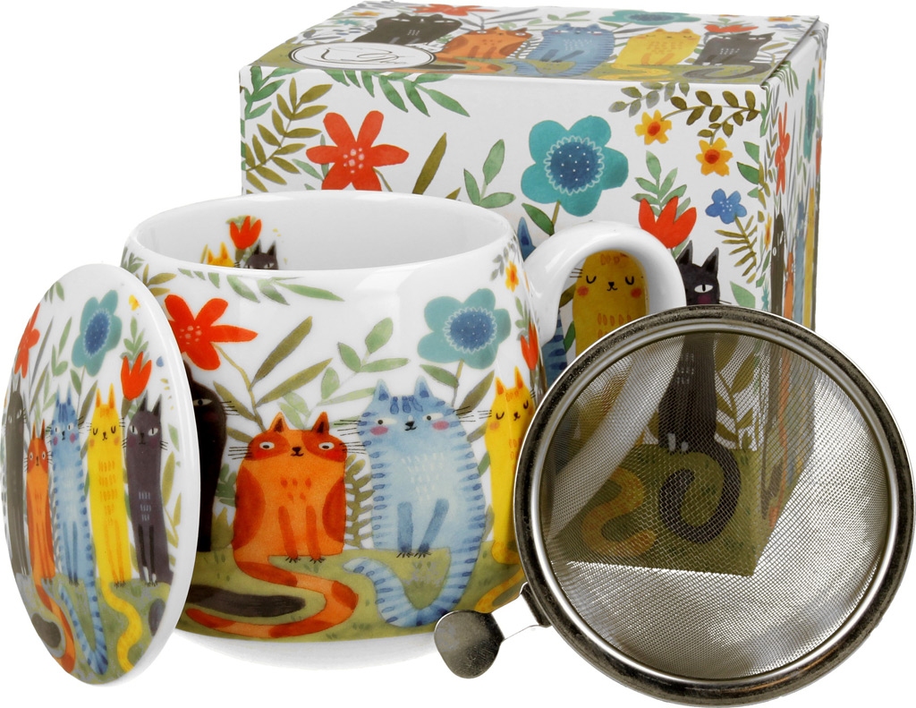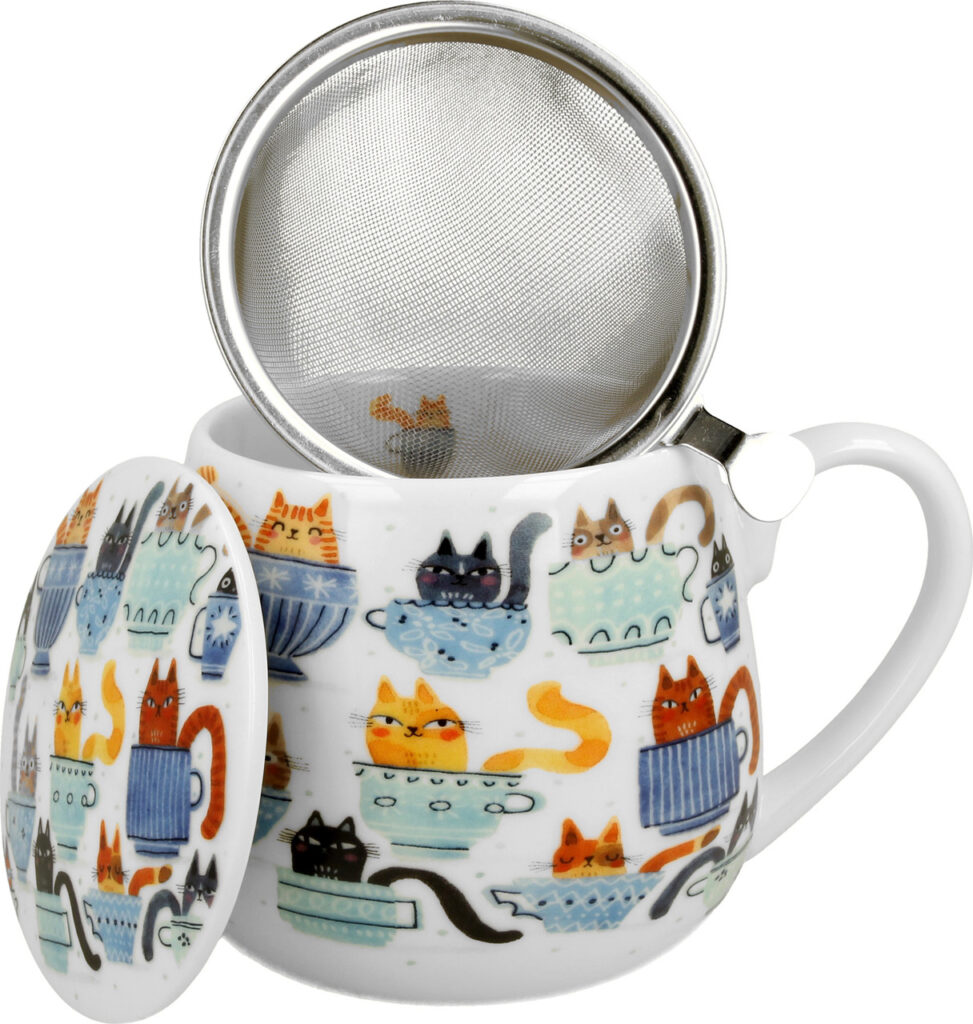 Skodelica+pokrov+cedilo Mucki na čaju, 430 ml porcelan, darilna embalaža, 4034